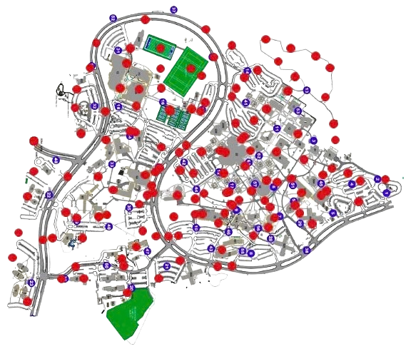 Every dorm, building, and parking lot covered